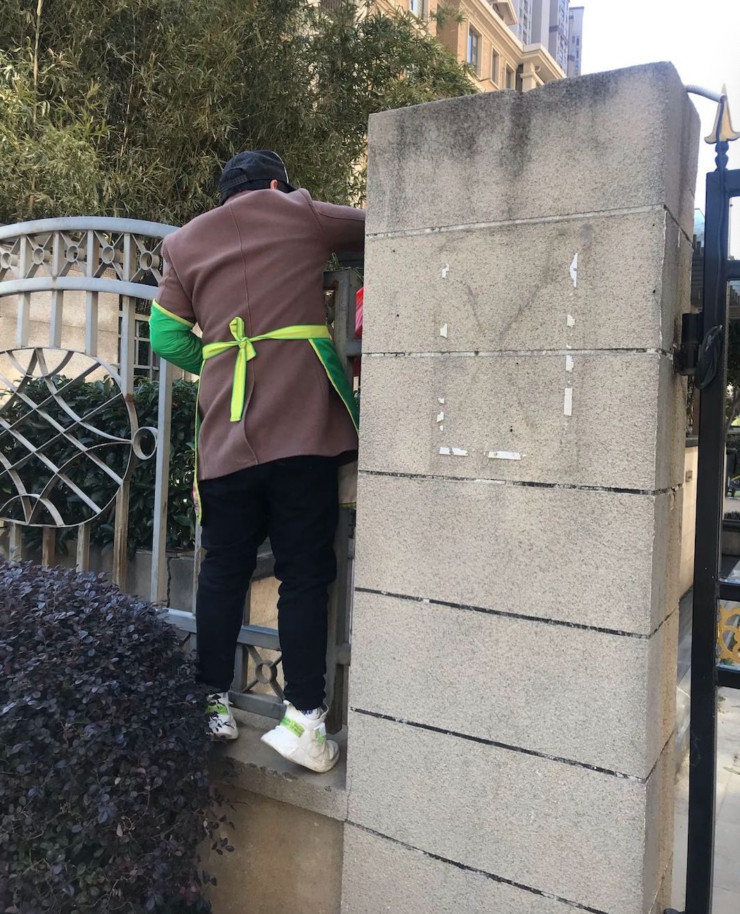 丽景湾小区的各个苑区都封锁了,尹维只能隔墙递送外卖