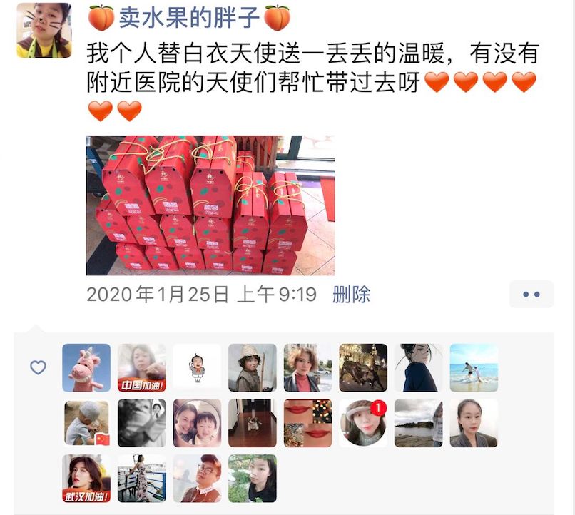 随后,更多的店长开始加入。他们给尹维打电话,问她把水果送到哪家医院;更多的员工、加盟商、供应商等生态伙伴也加入,他们也给武汉或是当地的医院和单位送去了水果。